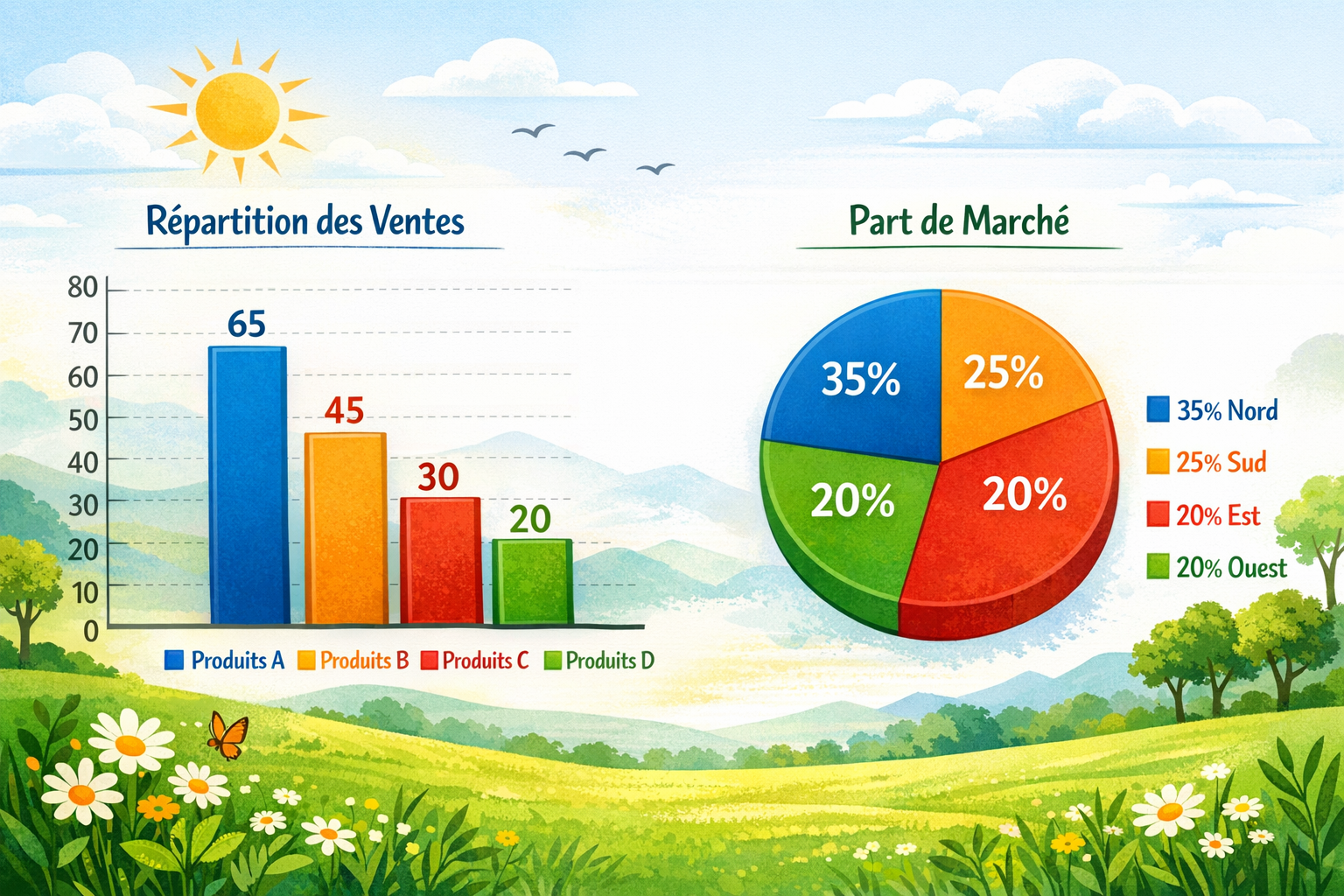 - Diagramme circulaire : pour les proportions (angles = frequence x 360)