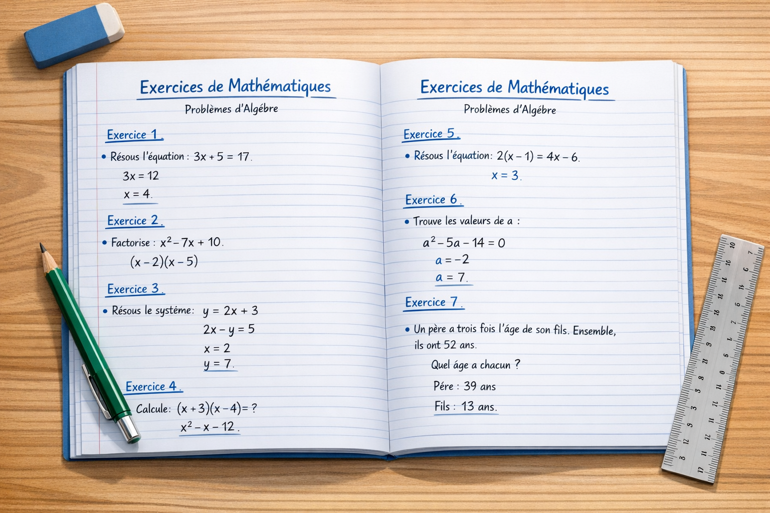 8 exercices progressifs sur les equations du premier degre en 4eme.
