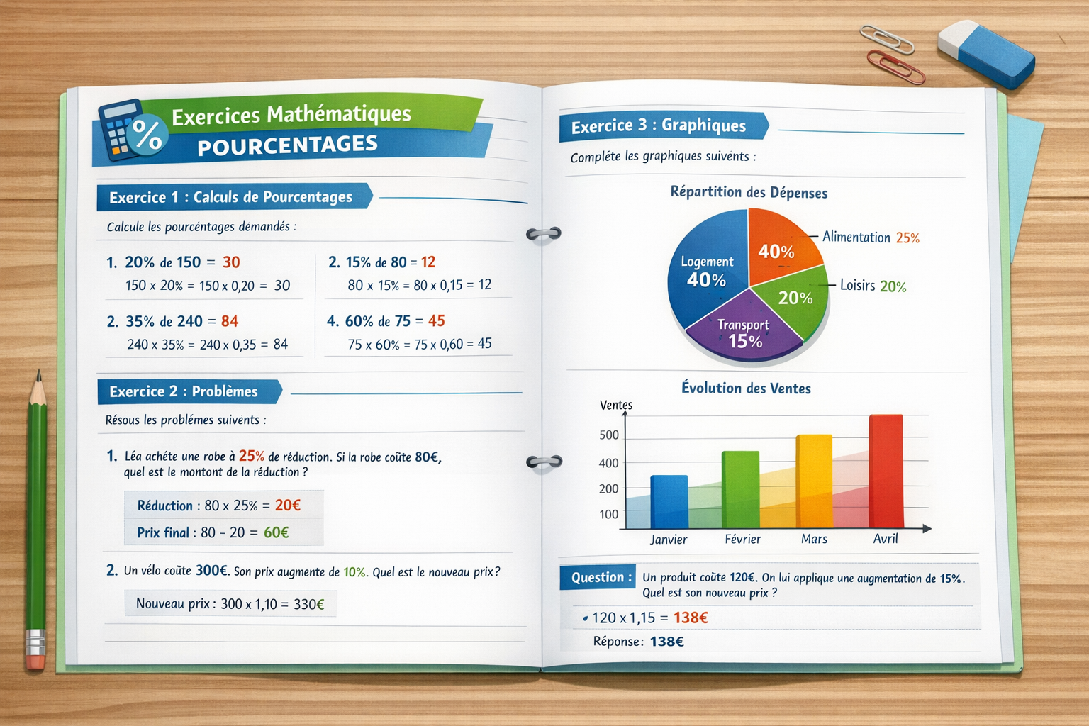 Exercice 2 — Exprimer en pourcentage