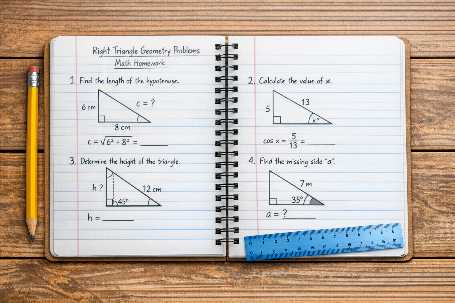 6 exercices pour maitriser le theoreme de Pythagore en 4eme.